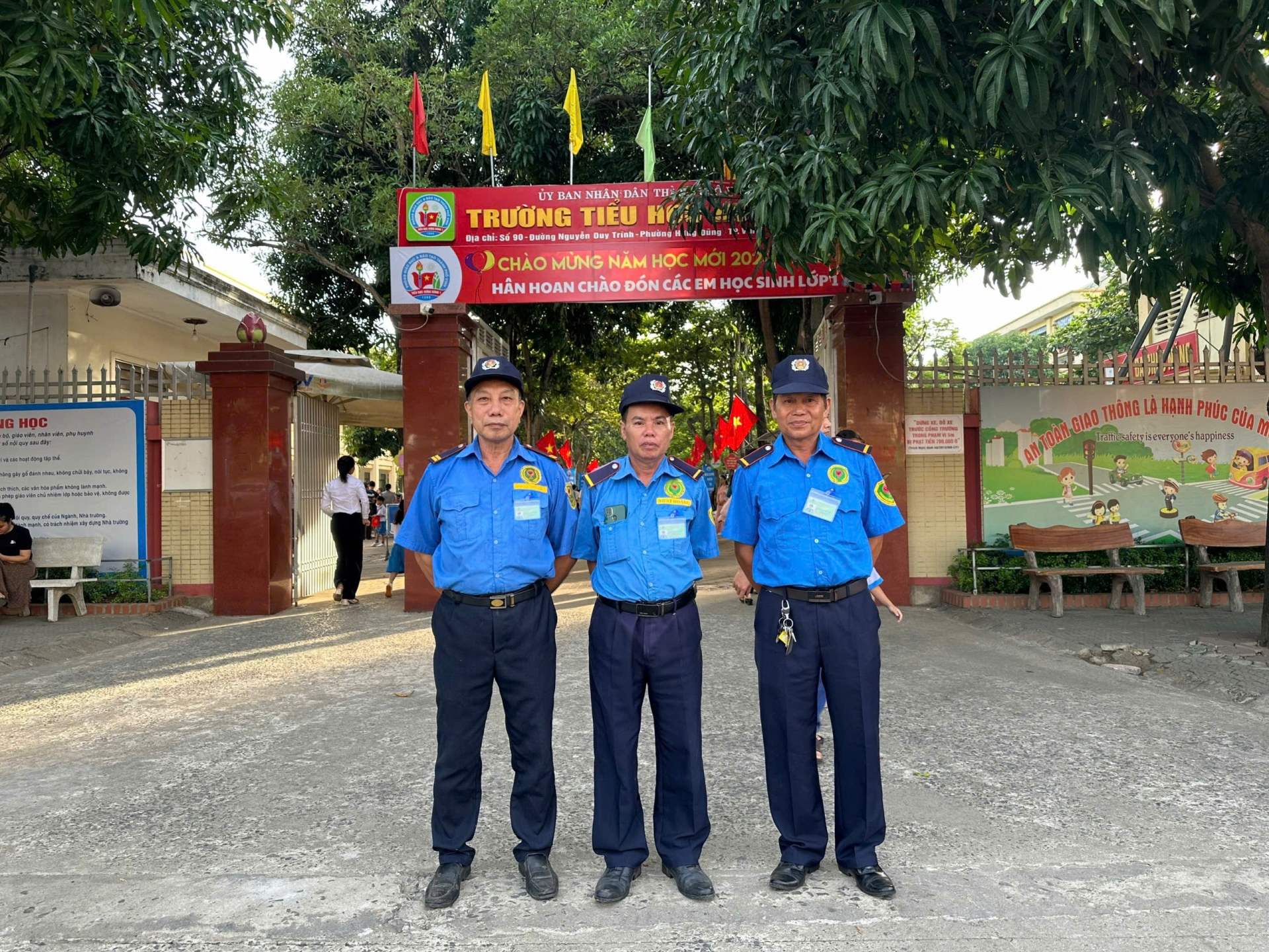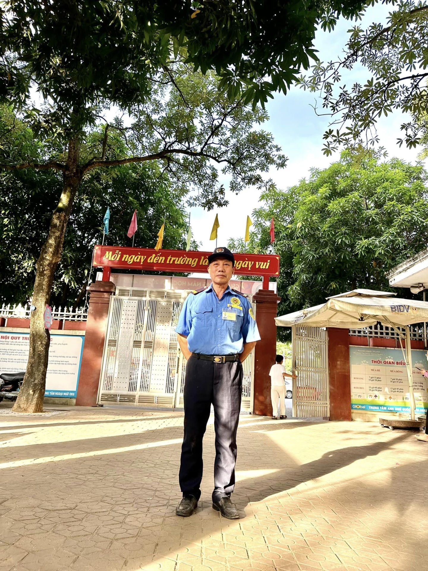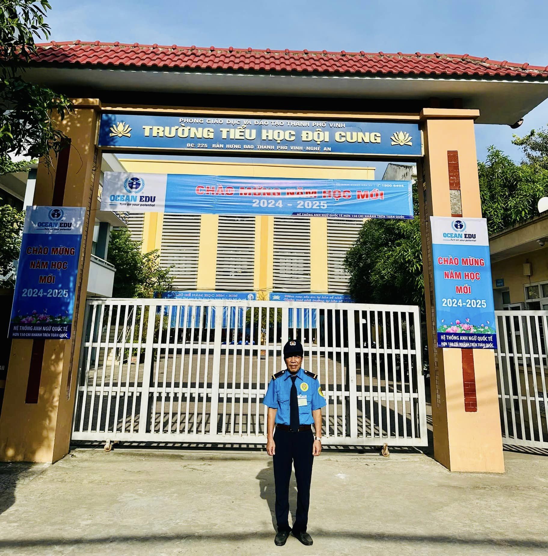 Bảo vệ trường học đảm bảo an ninh trật tự trong mọi thời gian.